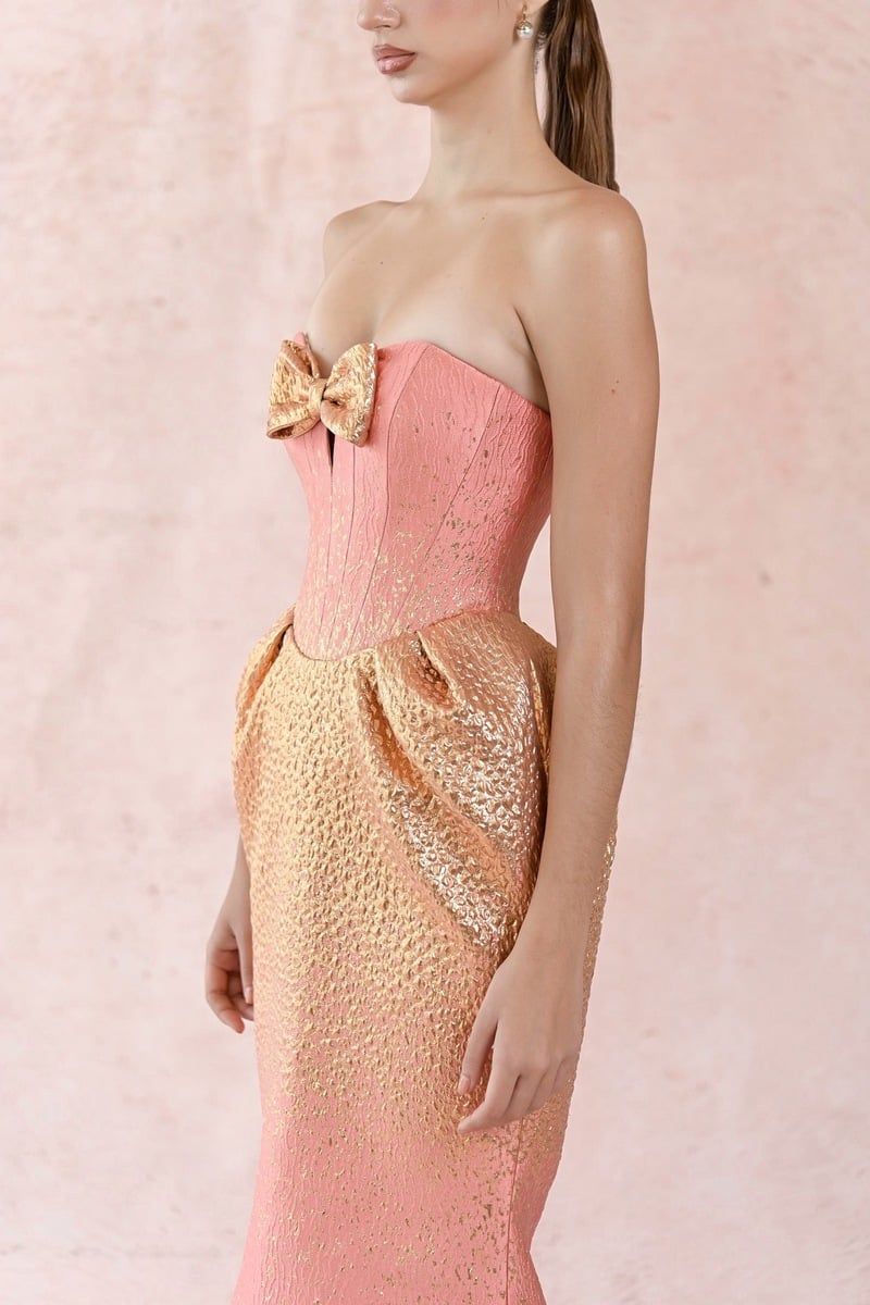 Brocade Bowtie Fishtail Dress