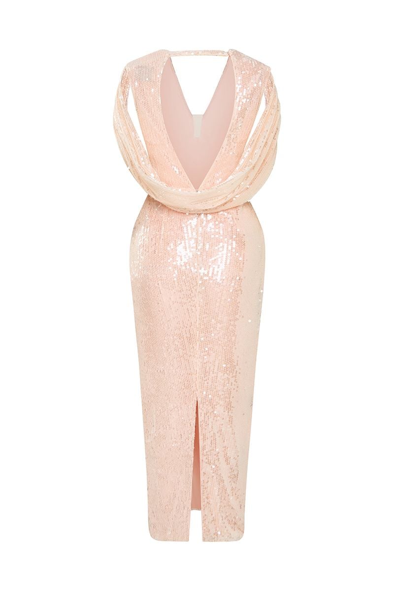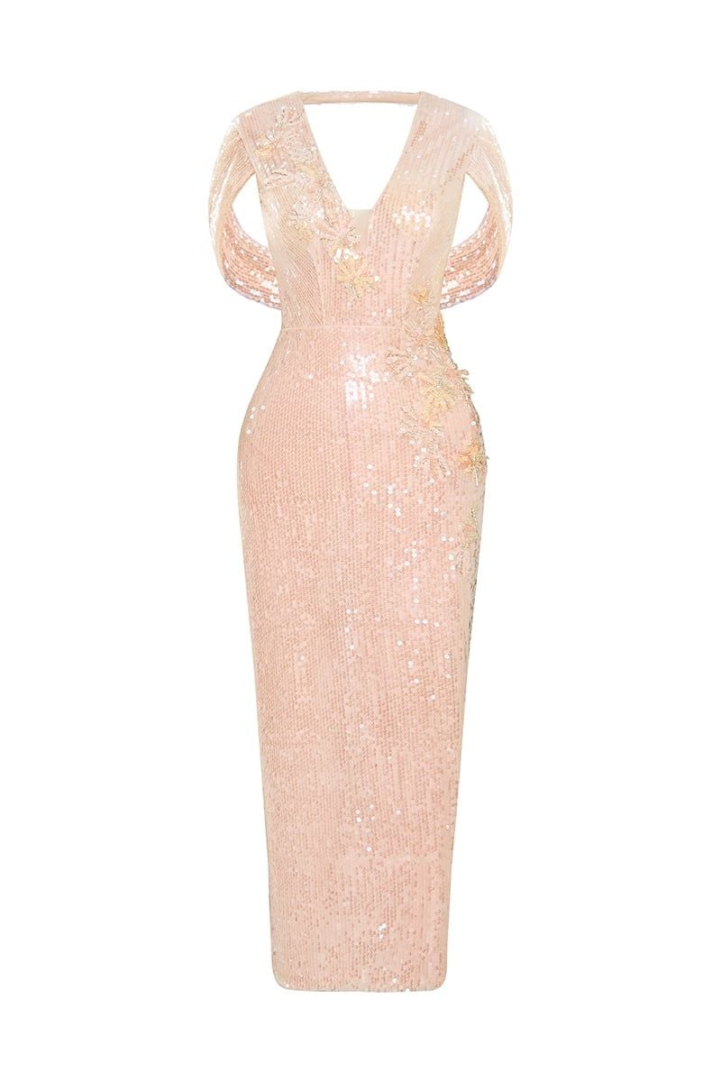 Celeste Sequin Cape-Sleeve Dress