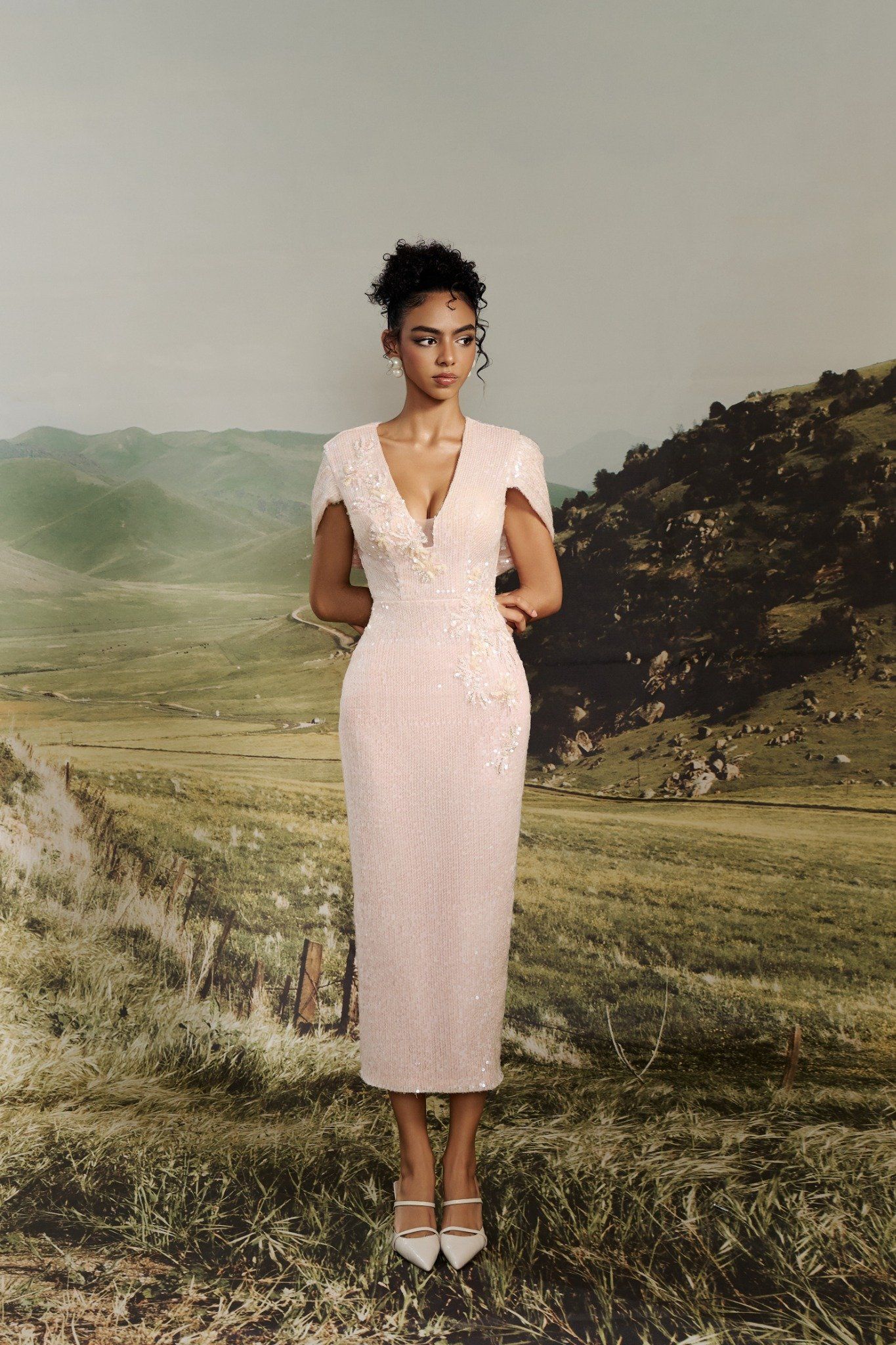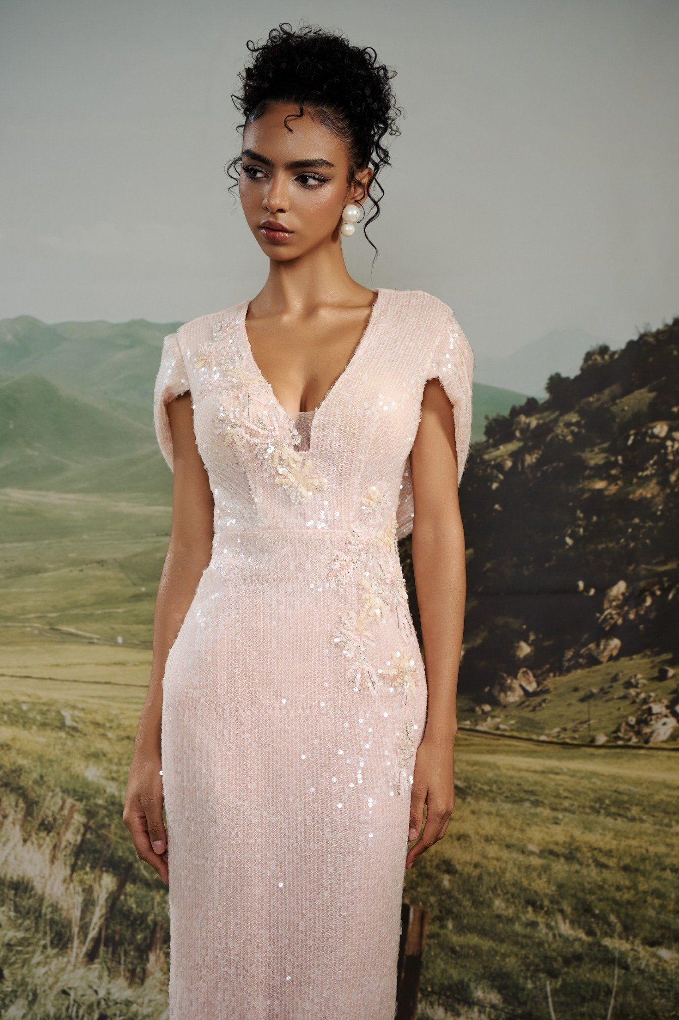 • Fully hand-applied sequin overlay for luminous sparkle