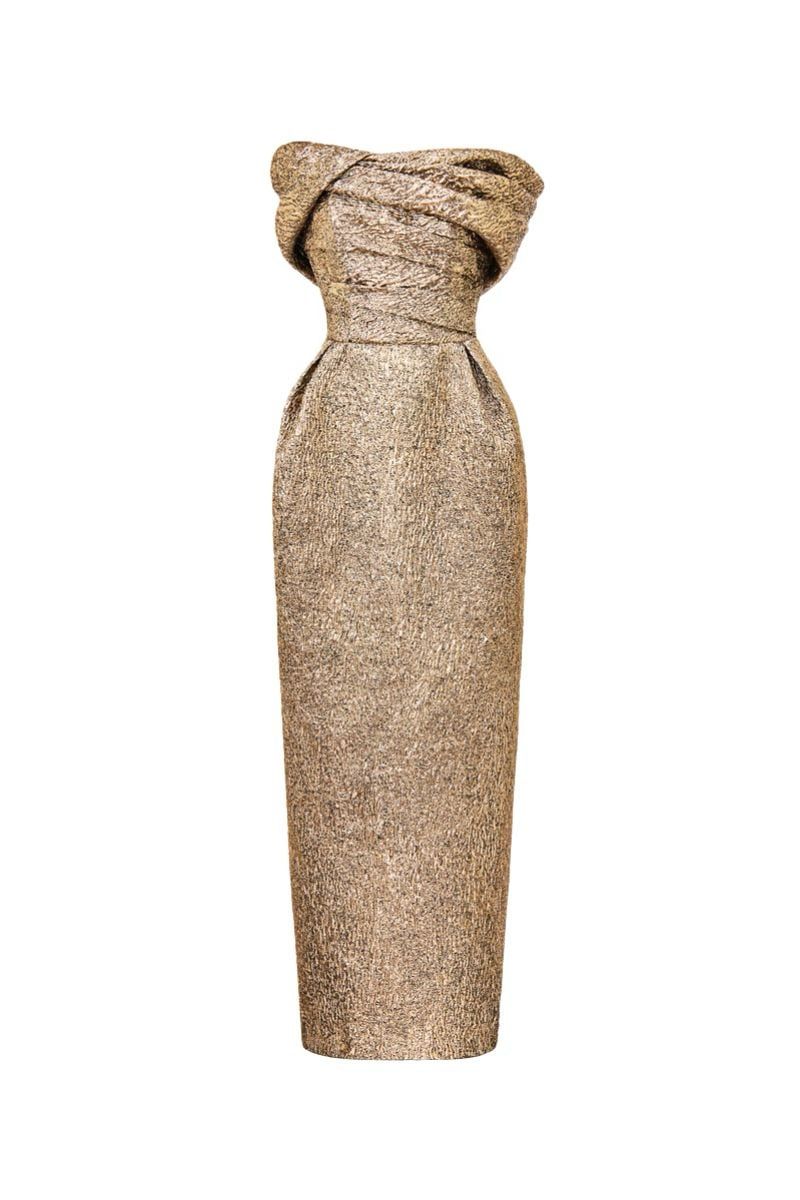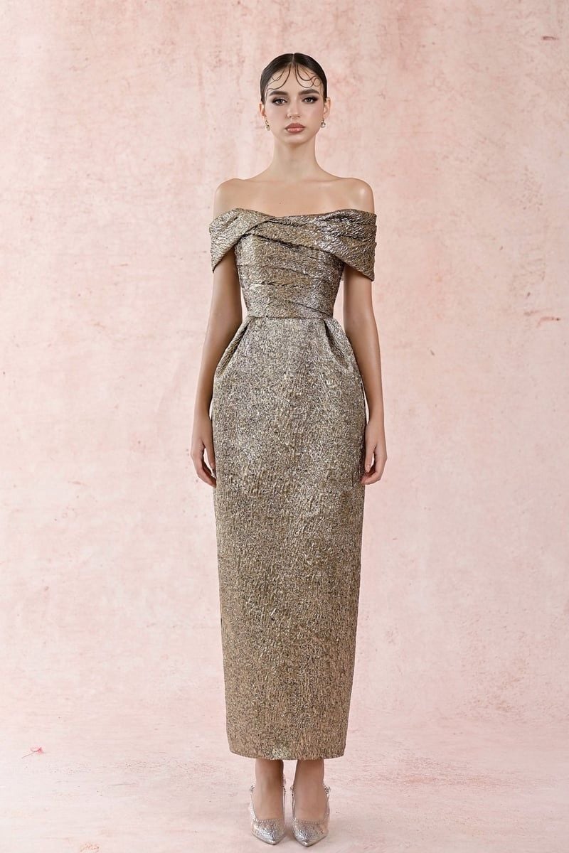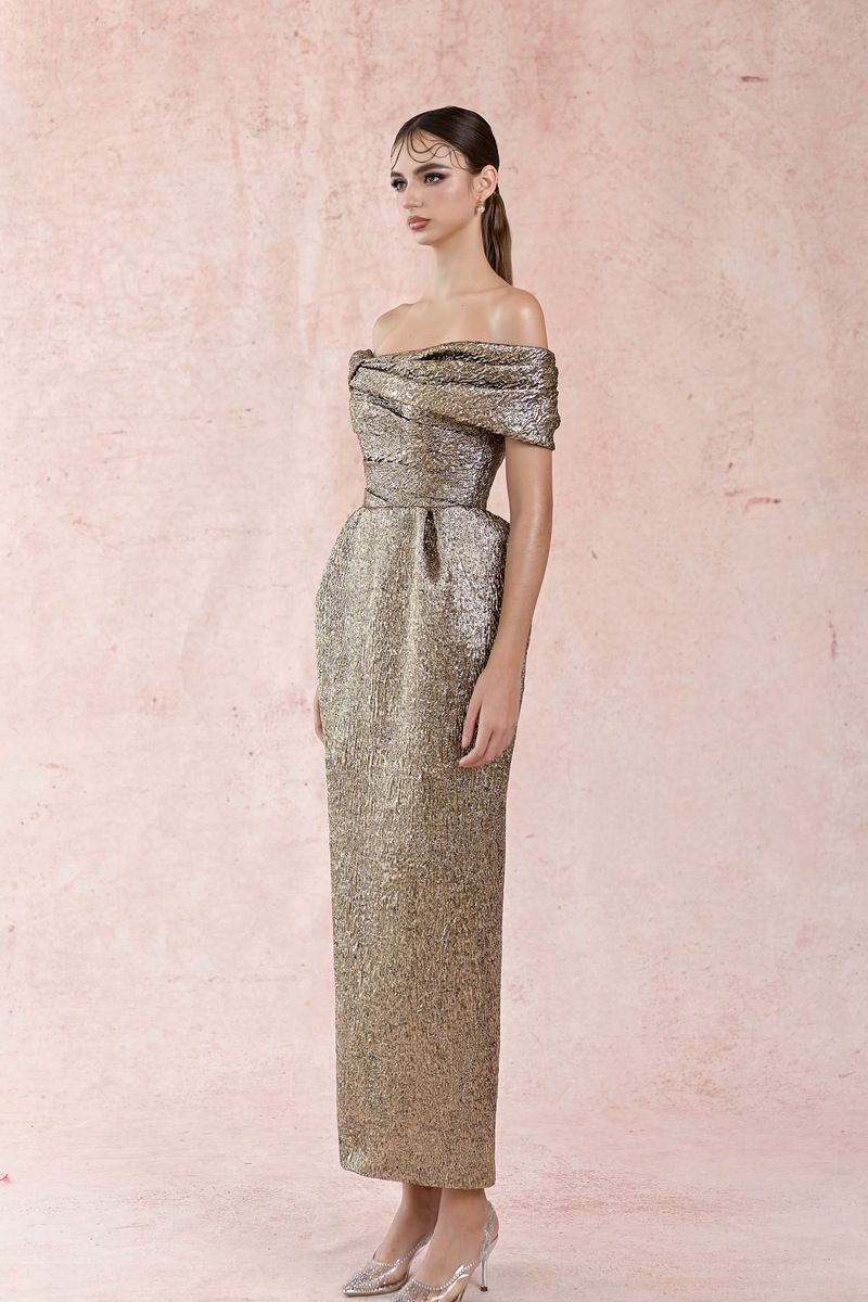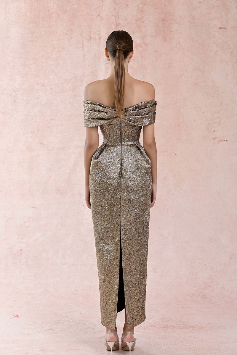 Jacquard Gold Offshoulder Dress